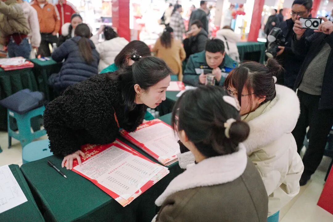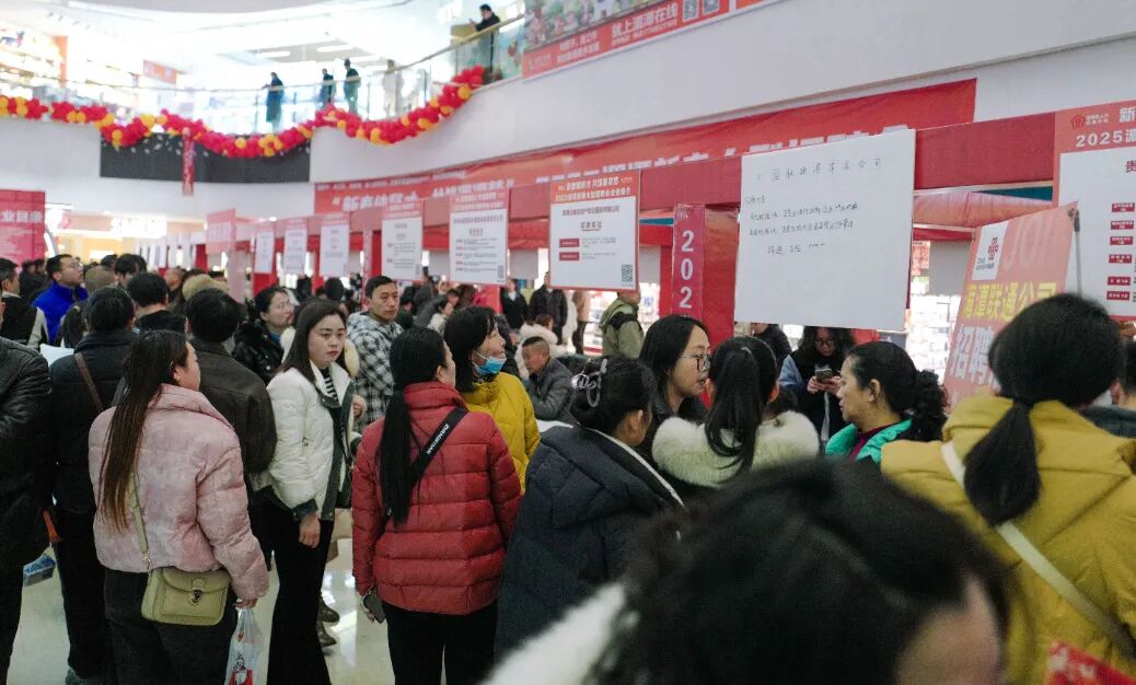 2月5日中午,2025年湄潭“新春纳贤才 就业促增收”湄潭新春大型招聘会首场(县内企业专场)在湄潭县方圆荟购物广场正式启动。
